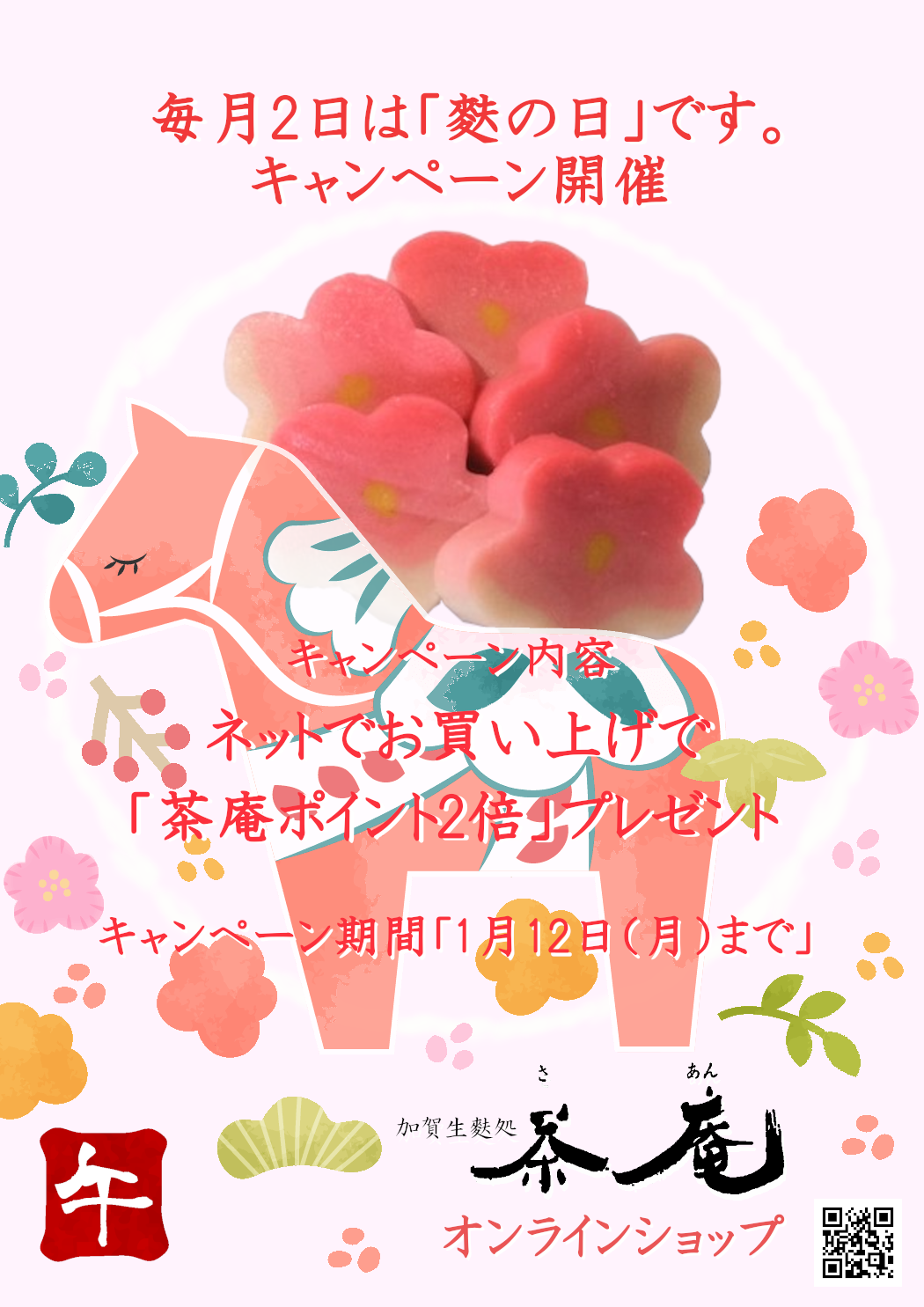 2026年1月「毎月2日は麩の日キャンペーン(ネットでお買い上げで茶庵ポイント2倍)」を開催致します。期間:2026年1月12日(月)まで